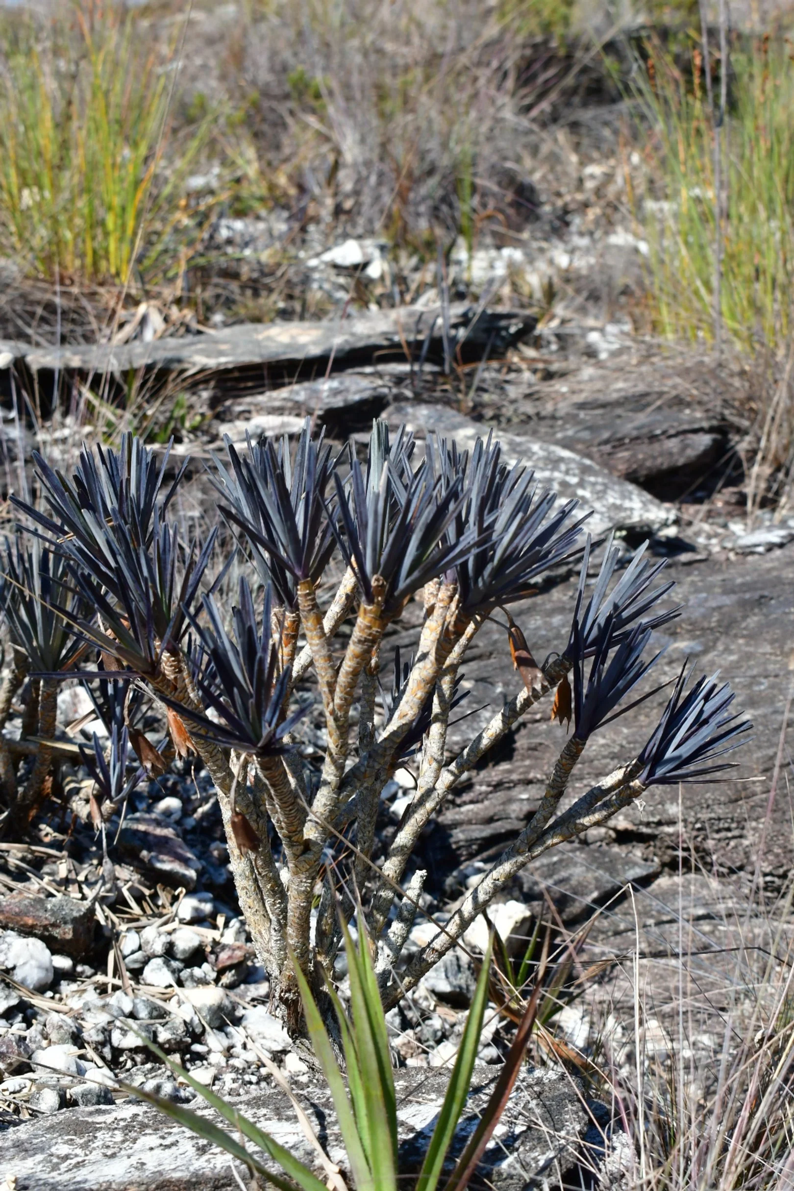 The flowers of Vellozia are often large & showy, and the fruits (ala ovaries) are often covered in sticky, stipitate glands. In the pic of leaf rosettes, you can see the vegetation which appears totally dessicated & vrispy but is most assuredly NOT dead.